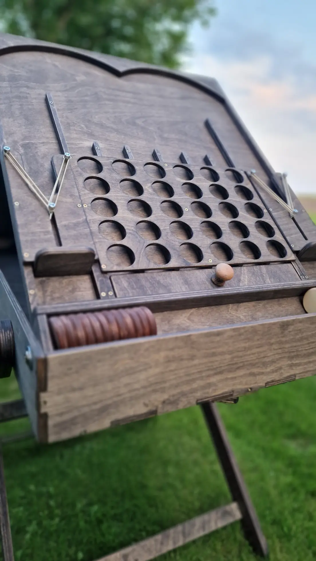 Eilės meistras pagamintas iš aukštos kokybės faneros ir natūralaus medžio – tvariau, sunkiau, estetiškiau. Tinka laukui, parodoms ir ilgalaikiam naudojimui. Galima graviruoti logotipą. Gaminamas Lietuvoje.