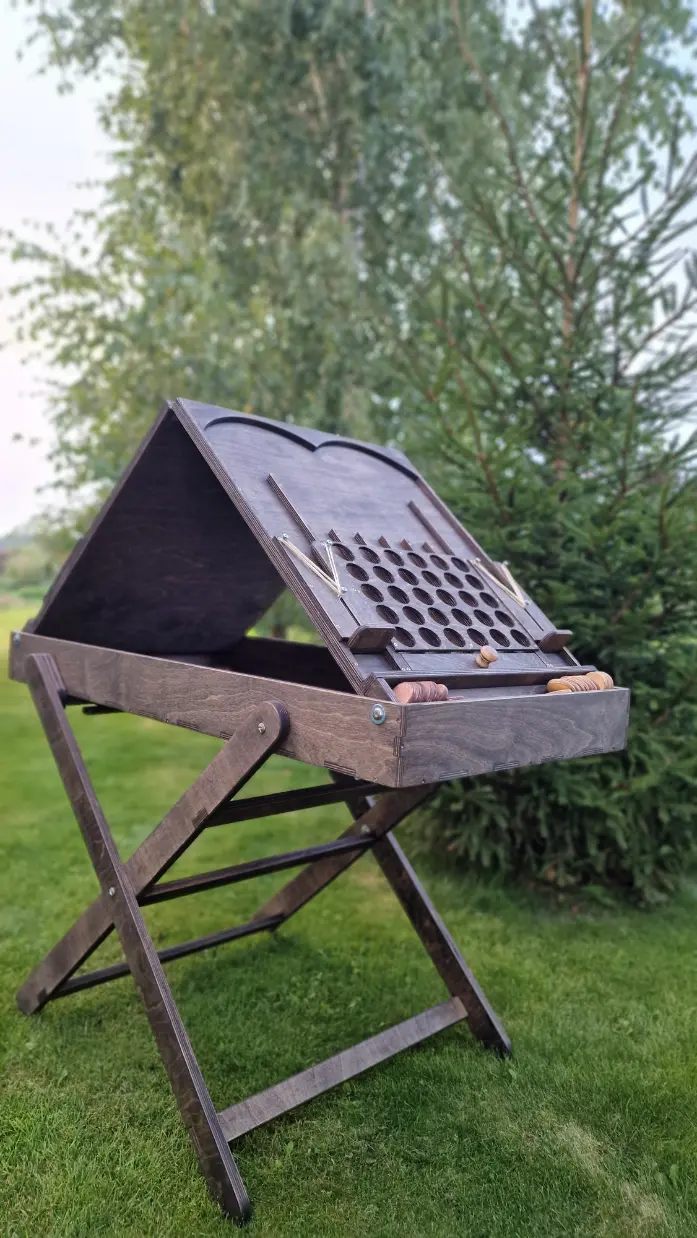 - Konstrukcija: dvipusė žaidimo lenta su sulankstomais kojomis