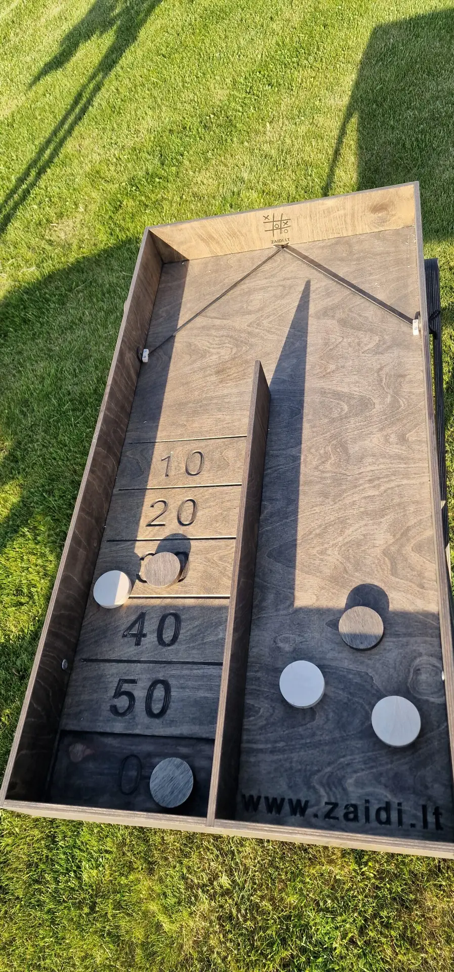 - Medinis lauko žaidimas (faneros pagrindas, rėmas, guma)