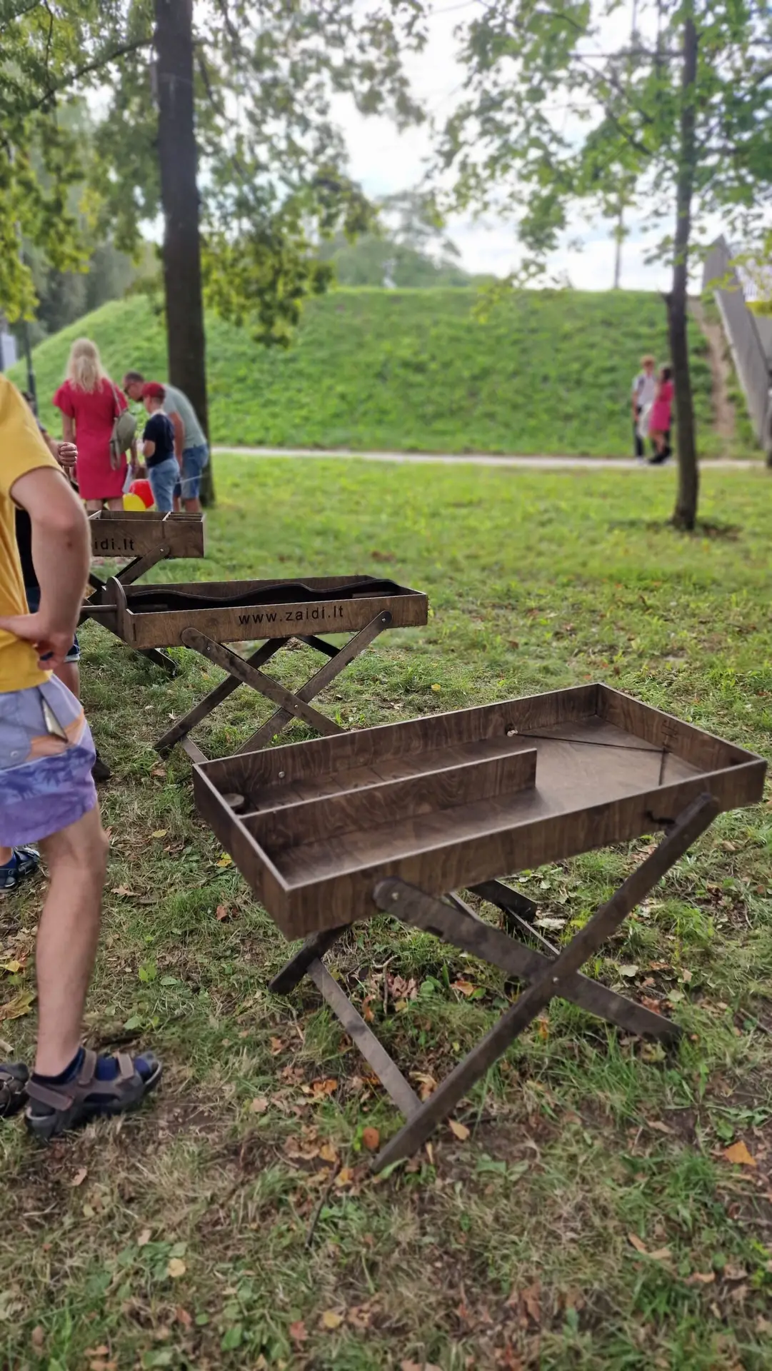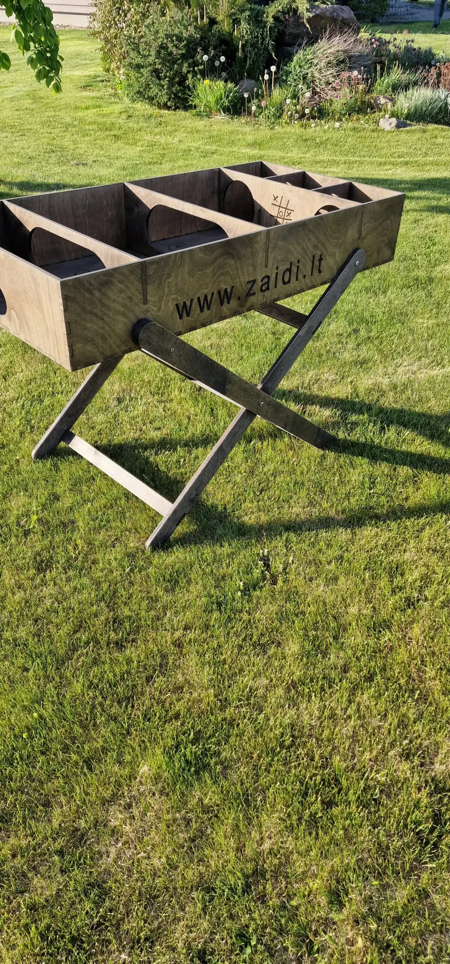 Gaminamas Lietuvoje iš aukštos kokybės faneros, su sulankstomomis kojomis – lengva transportuoti, greitai surenkamas. Galimas logotipo graviravimas – tinka įmonės renginiui ar stovyklos inventoriui.